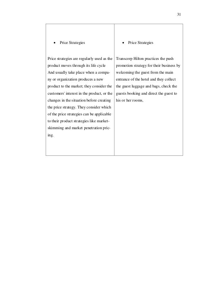 Williams Christopher Owolabi: Marketing Process of Hotel Services Case: Transcorp Hilton Hotel, Nigeria Thesis Degree Program in International Business, 40 pages, 2 pages appendix Spring 2010 ABSTRACT This thesis is to develop the business prospect of Transcorp Hilton Hotel market-ing process for implementation of their marketing activities. ... Fetch Full Source